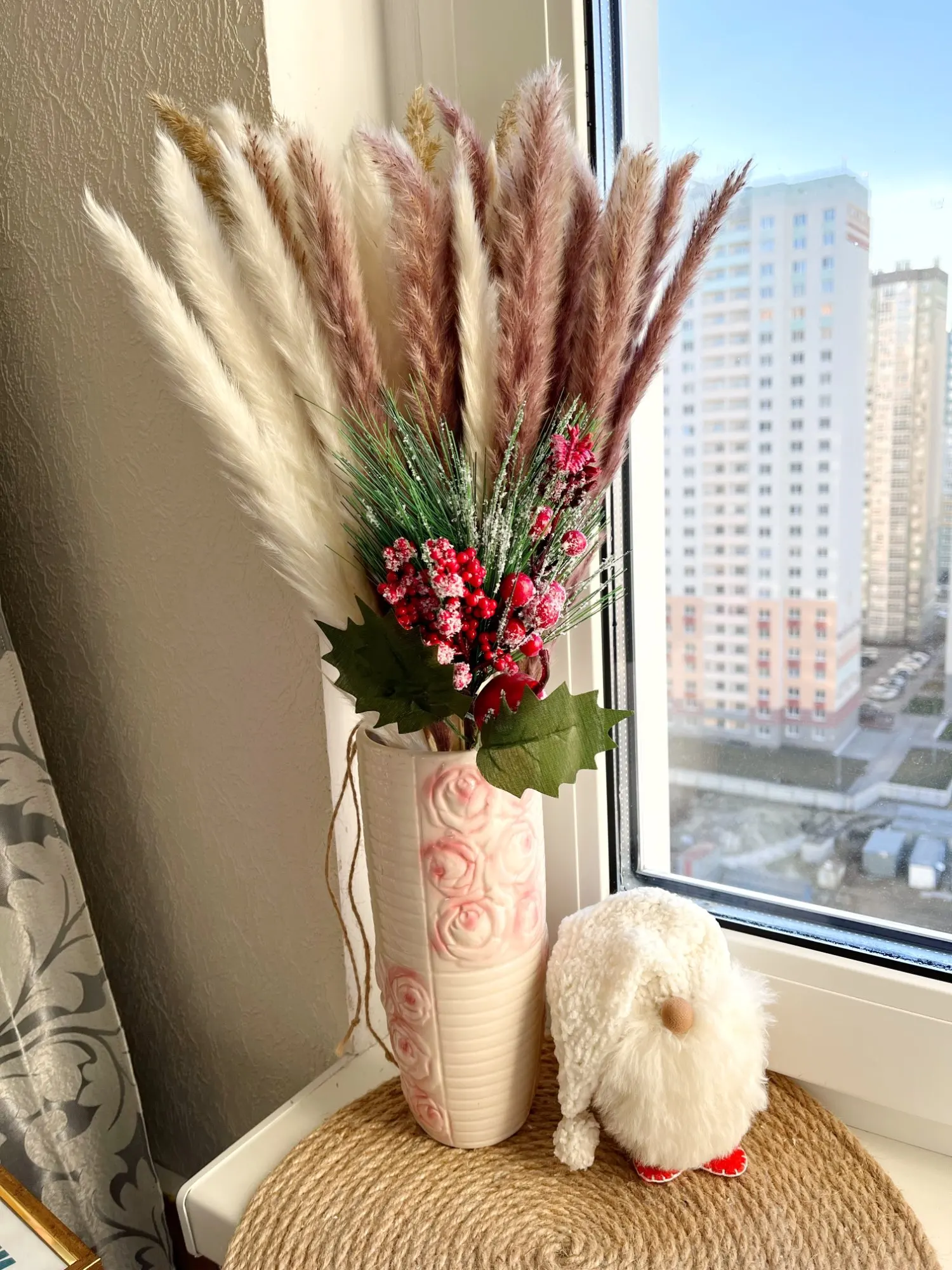 Наткнулась на магазин совершенно случайно и была приятно удивлена, что в данном магазине продаются натуральные природные сухоцветы из различных трав и цветов Обычно на Алиэкспресс - пластиковые цветы, а здесь- натуральные Я заказала букет из колосков в двух цветах- белом и коричневом! Колоски очень пышные и пушистые! Посылка пришла надежно упакована в коробку- все целое и невредимое! Я поставила колоски в вазу и смиксовала их с новогодним декором - получилось очень красиво ❤️