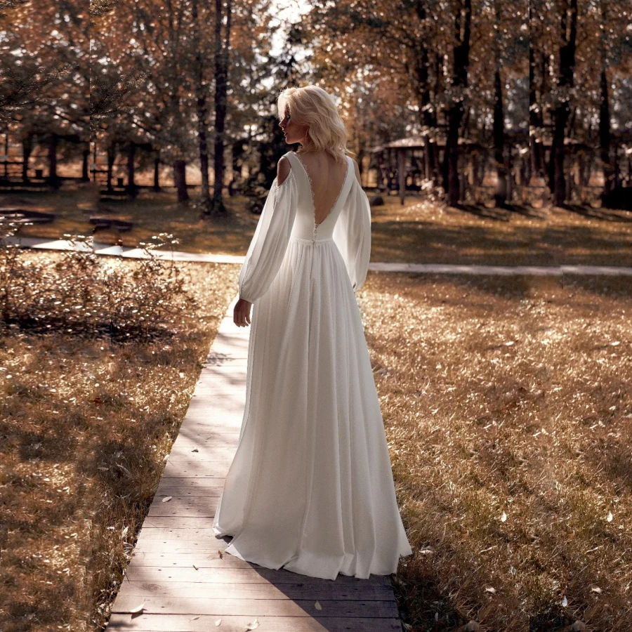Шифоновое пляжное платье с открытыми плечами, длинным рукавом и V-образным вырезом