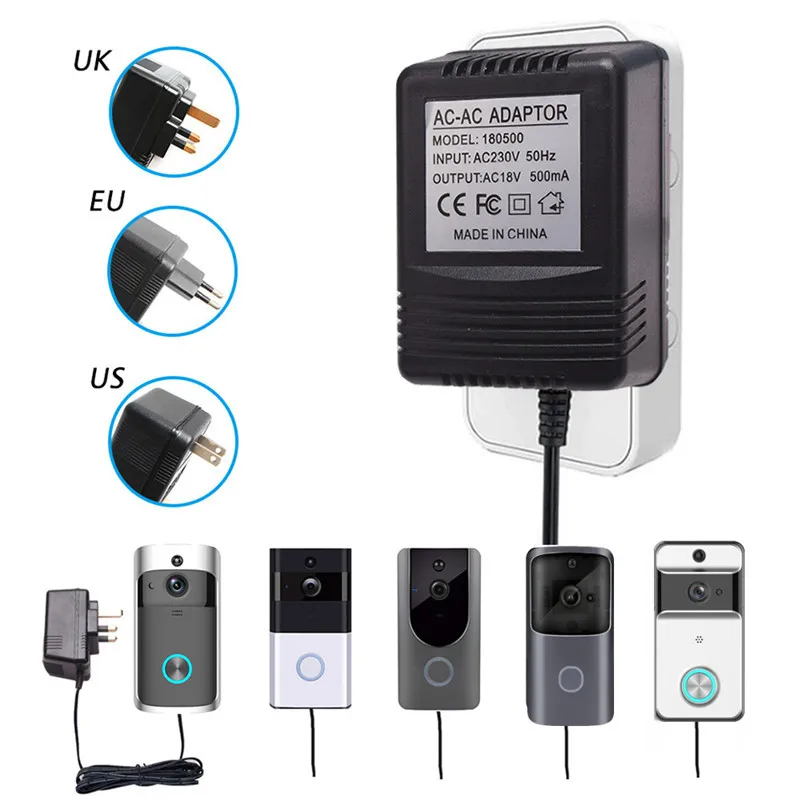 Wi-Fi Беспроводной видео-дверной звонок Камера Мощность адаптер US UK EU 18V переменного тока трансформатор Зарядное устройство IP видео домофон кольцо 110V-240V