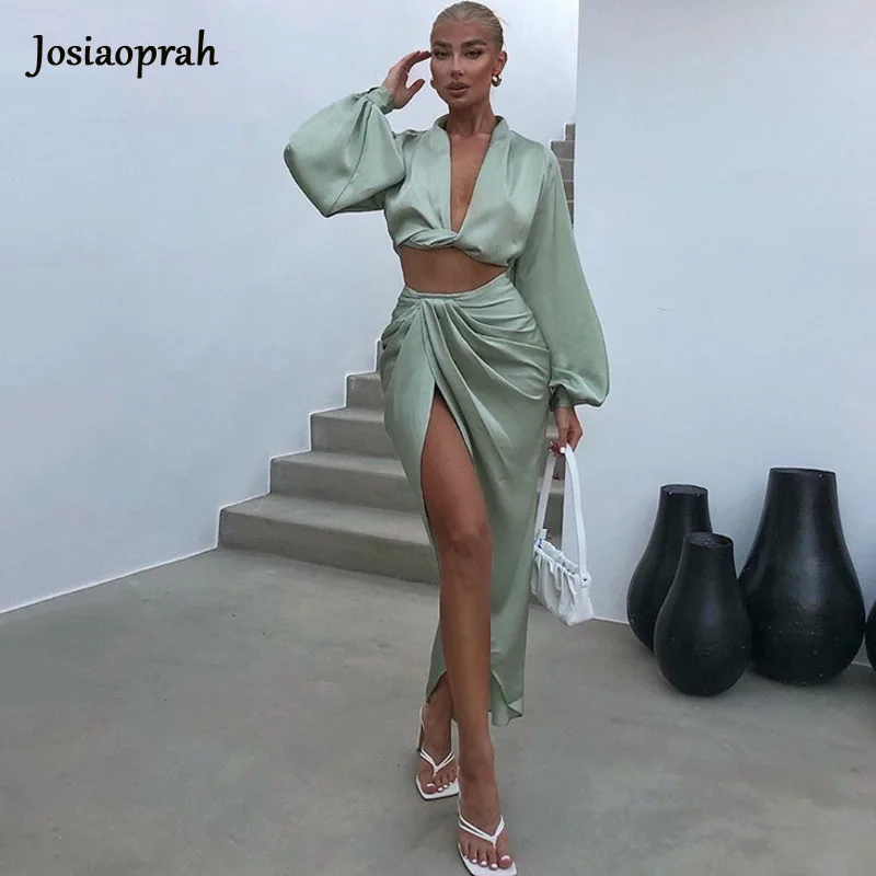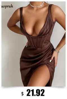 Josiaoprah сатиновое летнее платье женское сексуальное Клубное вечернее платье с длинным рукавом высокого Разделение V образным вырезом модное платье для ночного клуба, слитный купальник, одежда