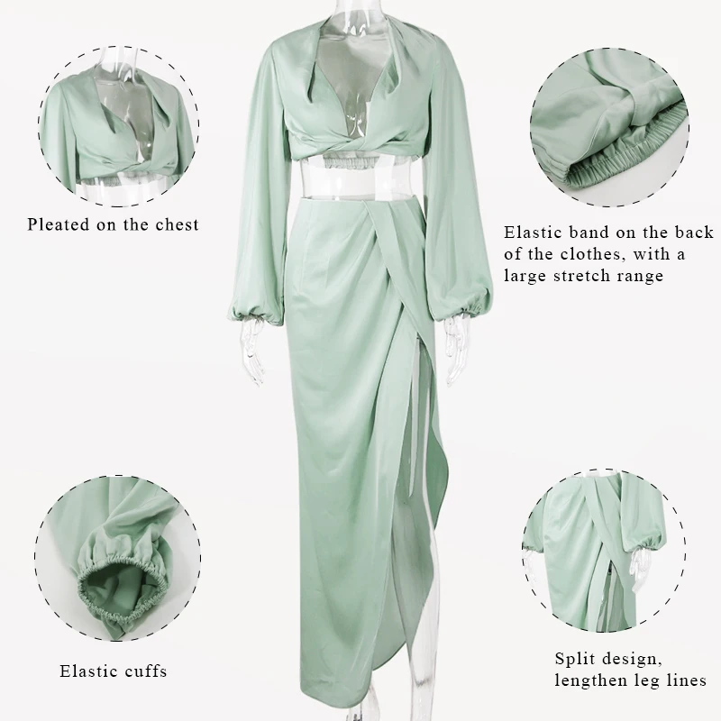 Kesiachiccly сатин из двух частей комплект Женский кроп топ с длинн...