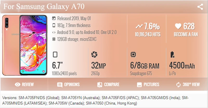Номер моделиA70 A705 A705F A70 2019