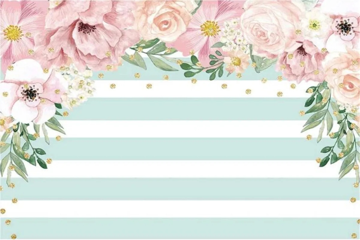 Розовый мятно-зеленый цветочный фон полосы Цветы День Рождения фотография Фон акварель Золотой сбрызг Душ Баннер