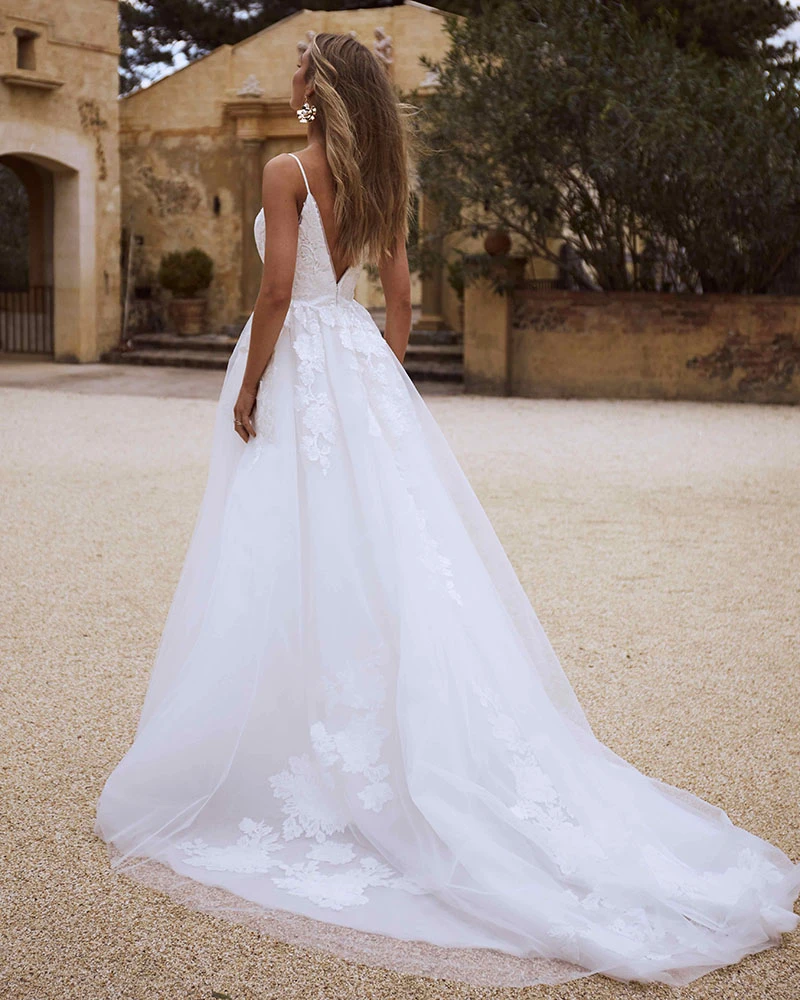 Пляжное кружевное свадебное платье на бретельках с аппликацией и V-образным вырезом ТРАПЕЦИЕВИДНОЕ свадебное платье принцессы с открытой спиной 2022