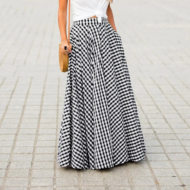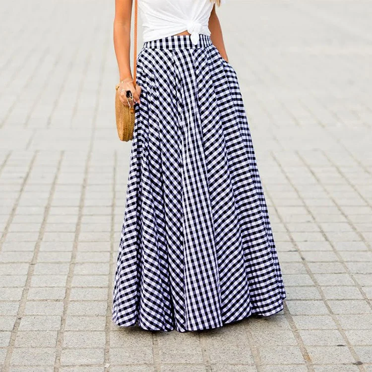Весна осень женские длинные юбки 2021 винтажная клетчатая Высокая талия шикарная плиссированная юбка богемный стиль девушки карманы молния макси юбка