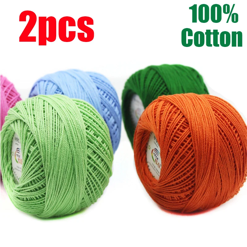 2 шт., пряжа из 100% хлопка, кружевная пряжа для вязания крючком