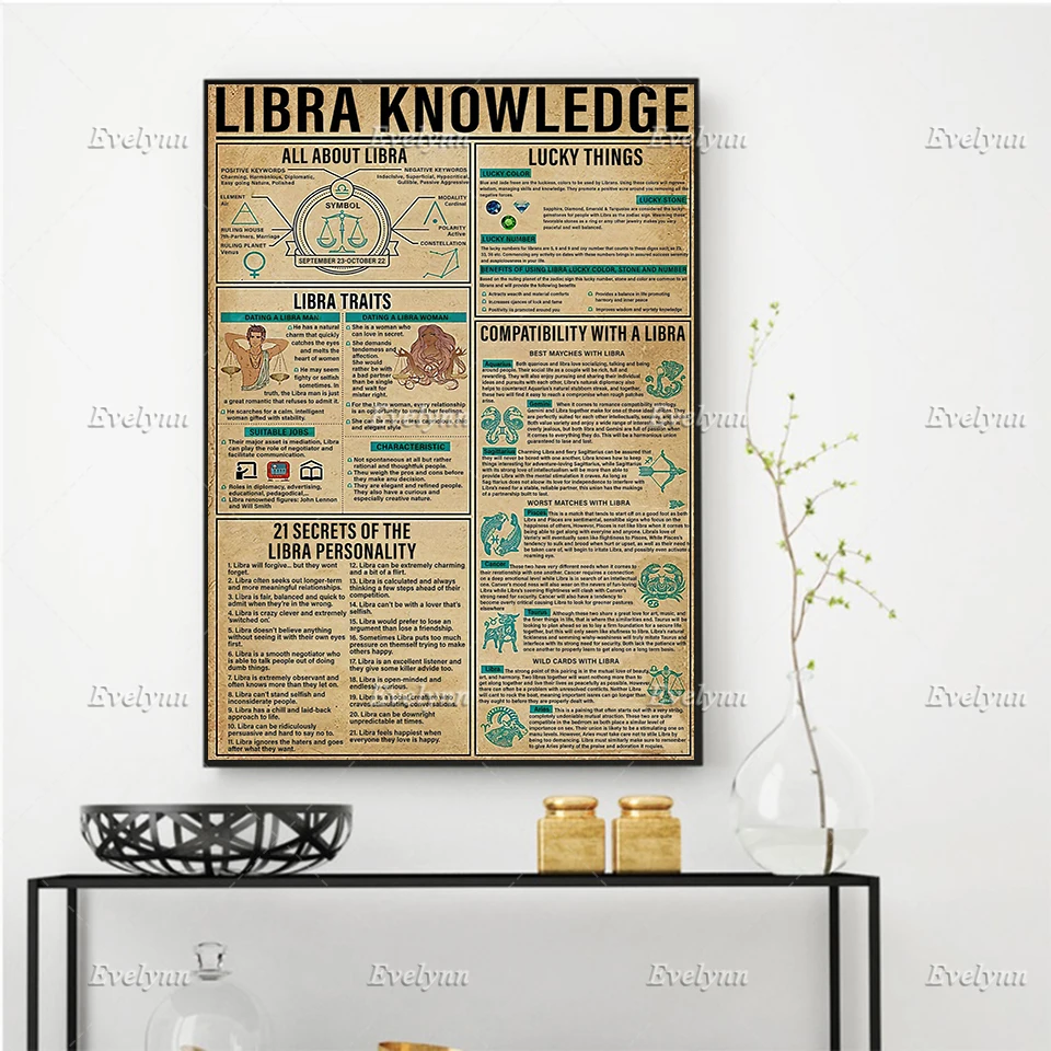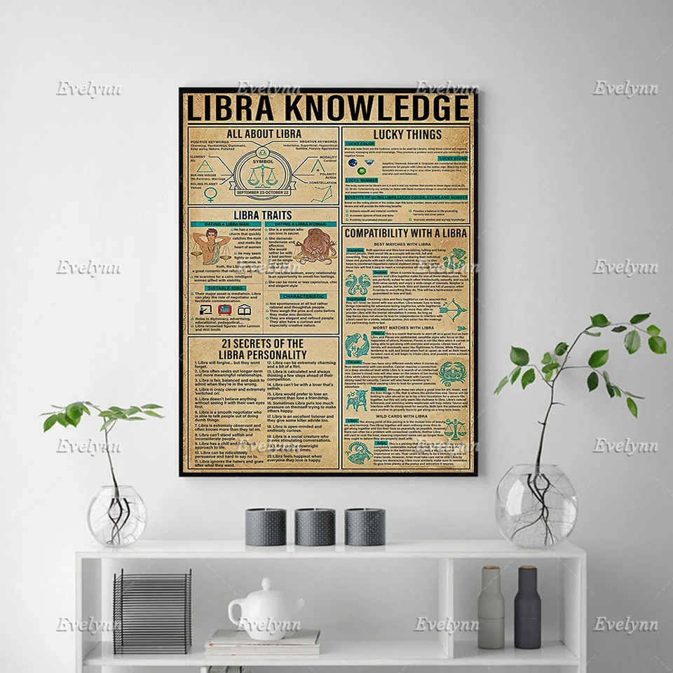 Знания о зодиакальных весах, плакат без рамки, украшение для гостиной, искусство на стене, холст, уникальный подарок, плавающая рамка