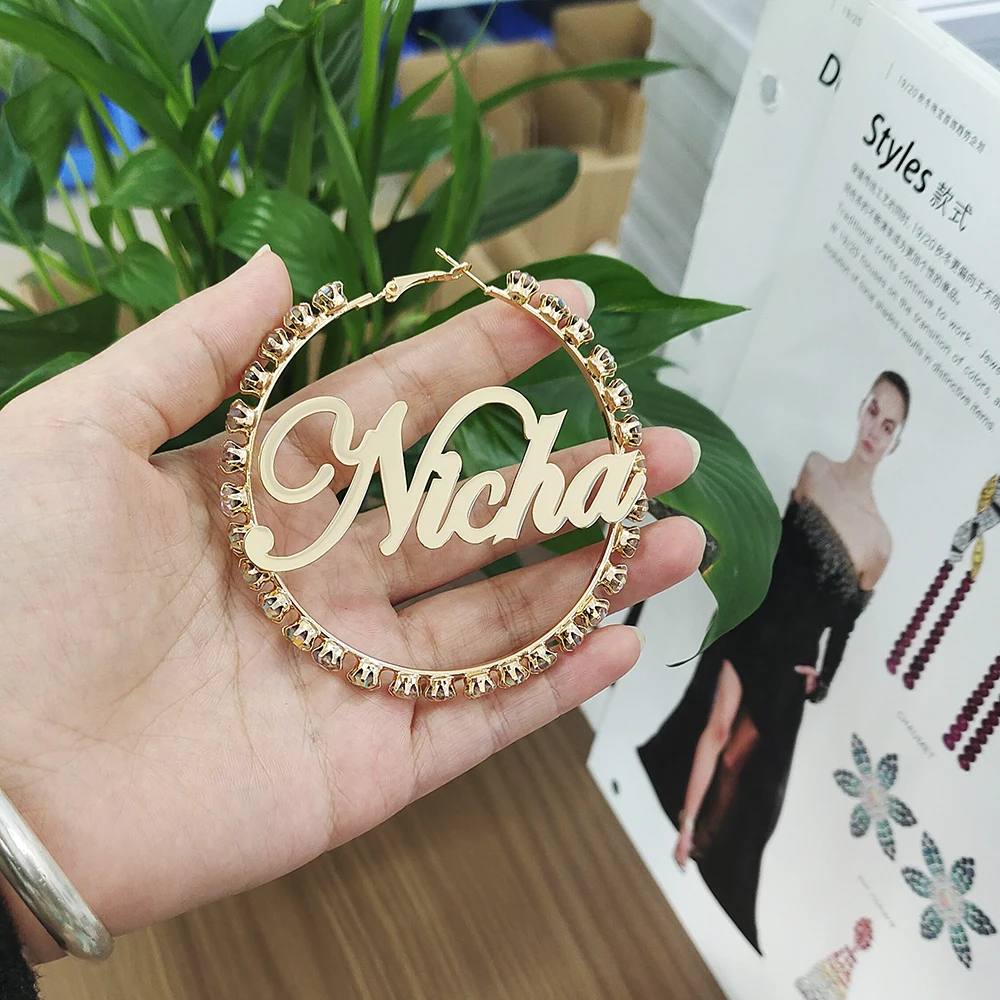 Серьги-кольца с именем и кристаллами, свадебные, с цветными бриллиантами, золотые, 2021