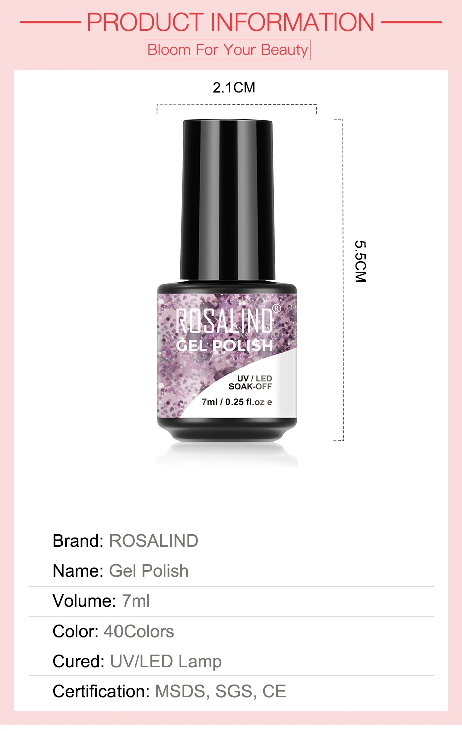 ROSALIND 7 мл отмачиваемый чистый цветной гель для ногтей яркий для дизайна ногтей светодиодный/УФ-лампа