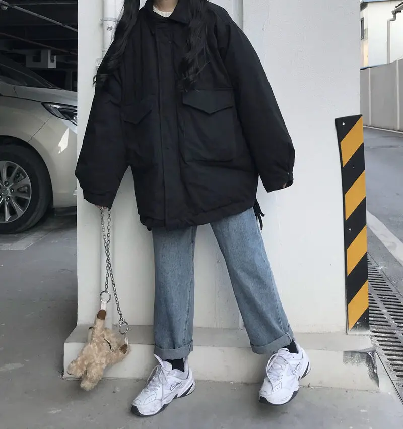 Куртка женская оверсайз, на молнии, с длинным рукавом, в стиле Харадзюку, зимняя, Винтаж, готика, черный