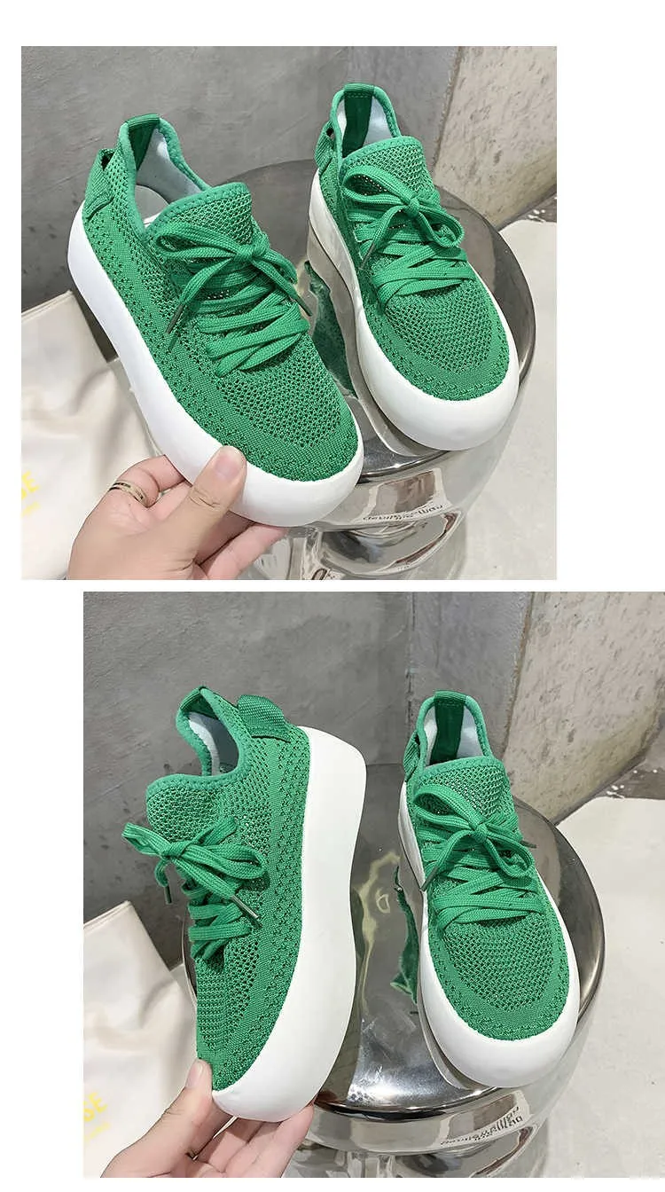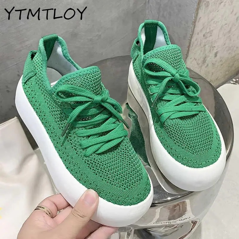 Женская сетчатая обувь на платформе, повседневная спортивная обувь черного, зеленого, белого цветов с открытым носком, 2021