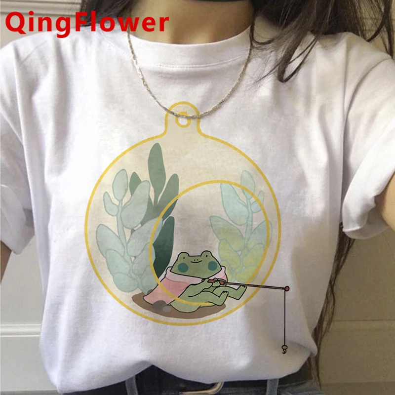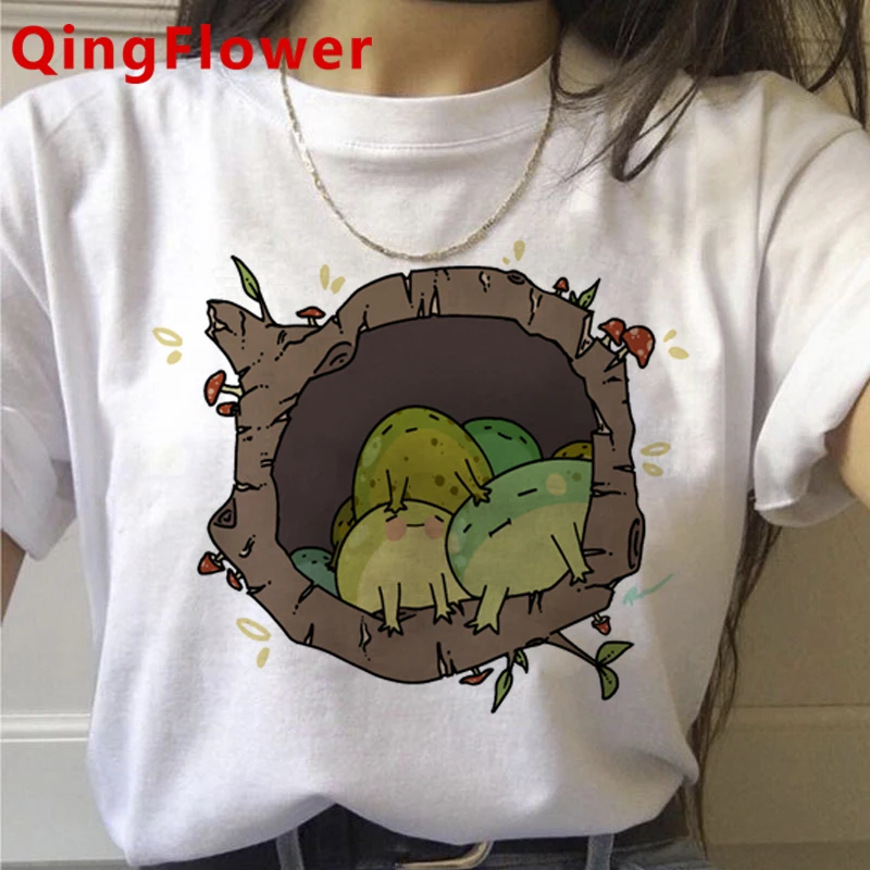 Футболка женская с принтом лягушки, винтажный Топ в стиле Харадзюку, белая рубашка, уличная одежда, на лето