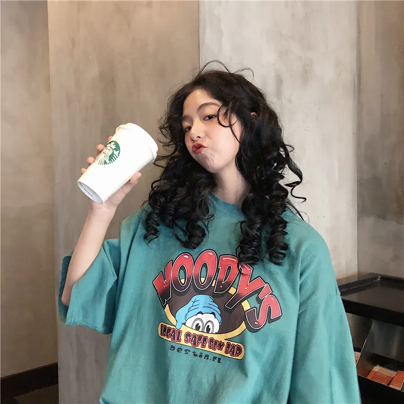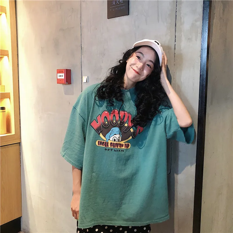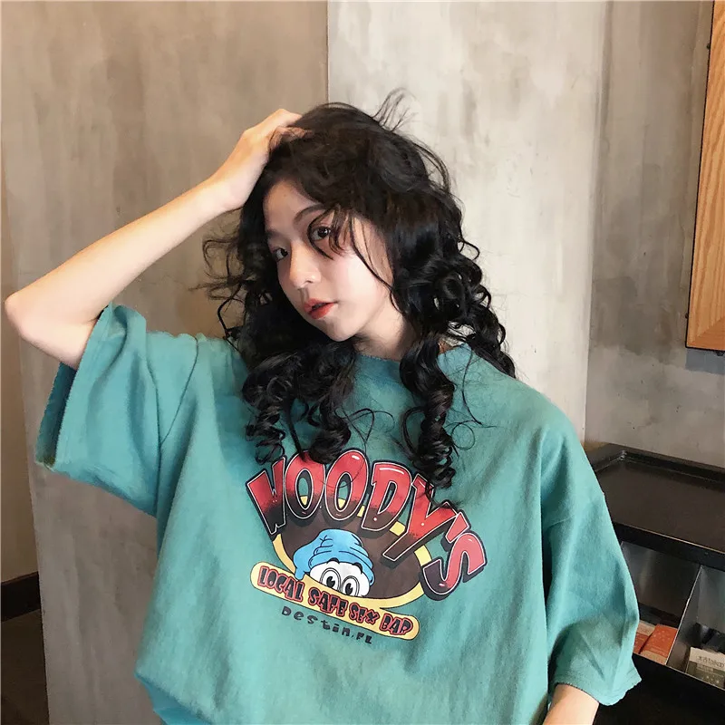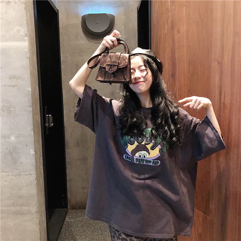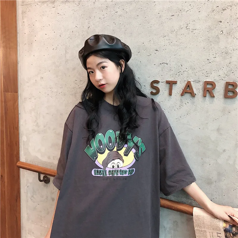Футболка женская хлопковая, с коротким рукавом и круглым вырезом, с мультяшным принтом, лето 2021