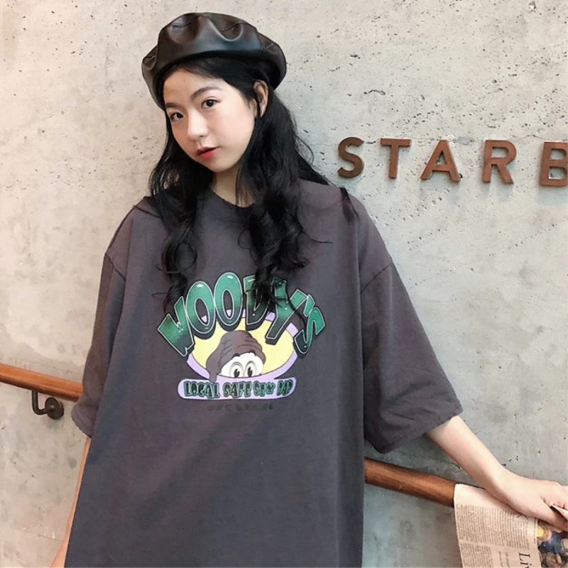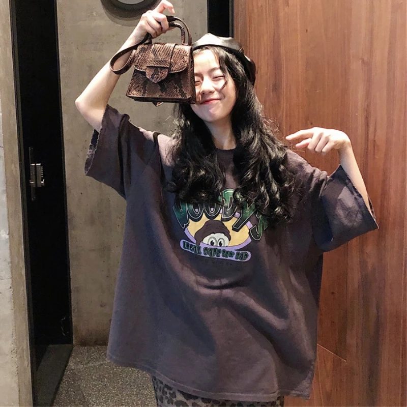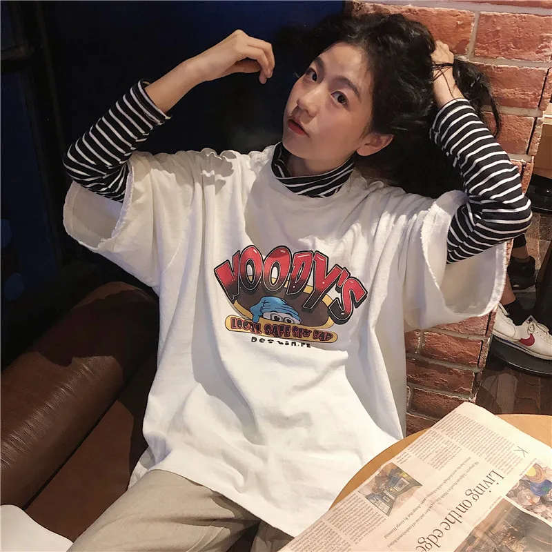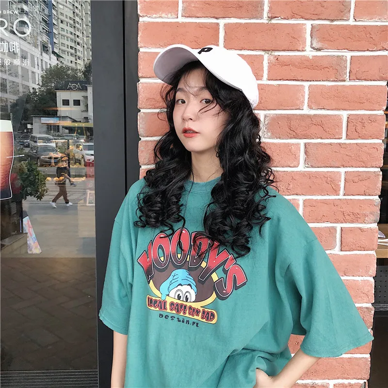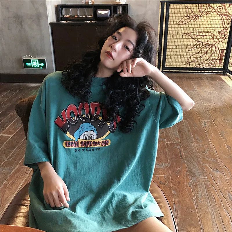 Футболка женская хлопковая, с коротким рукавом и круглым вырезом, с мультяшным принтом, лето 2021