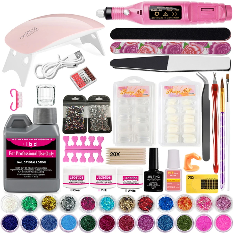 Набор акриловых ламп для ногтей сверление ногтей машинка полный маникюрный набор акриловая пудра с блестками жидкость для дизайна ногтей набор инструментов для стрижки