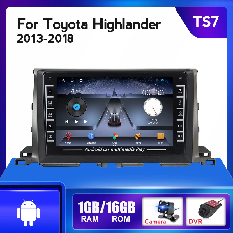 Автомобильный радиоприемник на Android 1 Гб + 16 Гб 4 ядра для Toyota Highlander 3 XU50 2013-2018 мультимедийный видеоплеер навигация GPS Светодиодный DVR WIFI