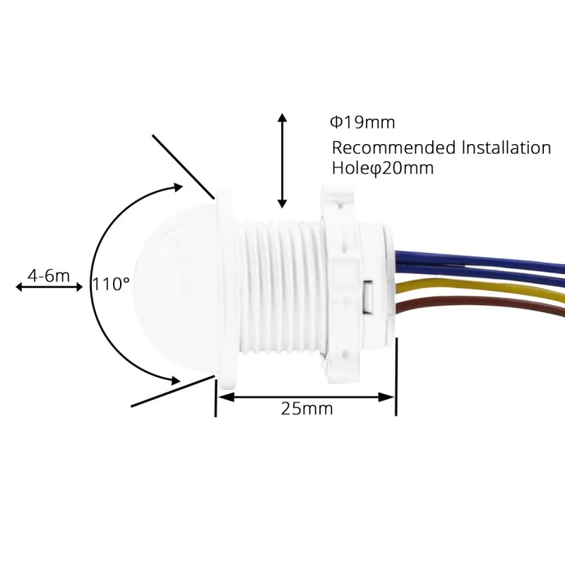 Характеристики:Цвет: белыйРекомендуемый Диаметр отверстия: около 20 ммДиапазон срабатывания: около 4-6 мВремя задержки: около 45 сУгол освещения: 110 °Рабочее напряжение: 85-265 вМощность: ≤ 40 ВтРабочая температура: -20-45 ℃