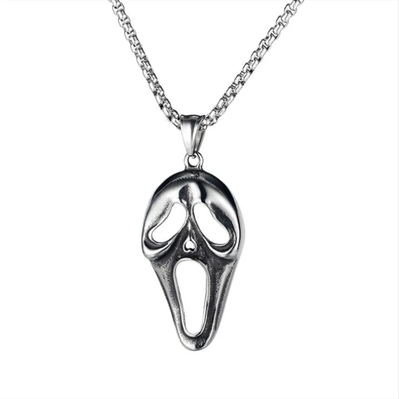 Модное перо маска призрака Мужская Подвеска Ожерелье Панк Винтаж нержавеющая сталь цепочка на шею для мужчин ювелирные изделия подарок