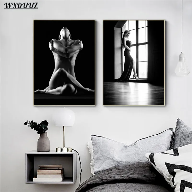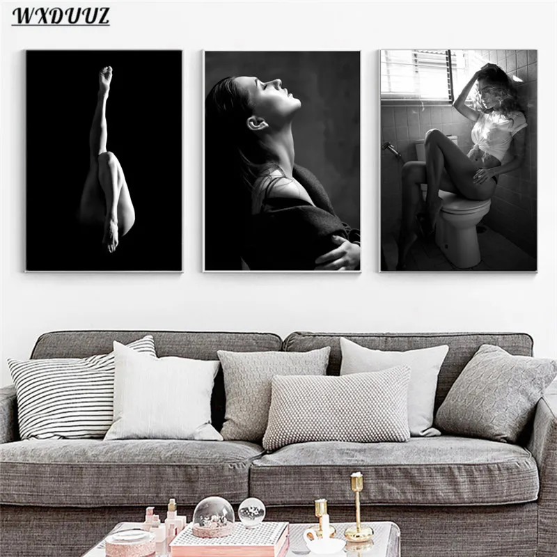 Скандинавский черный, белый, сексуальный женский, обнаженный, боди-арт, декор для комнаты, гостиной, дивана, Настенный декор, ретро картина, качественная Картина на холсте, постер