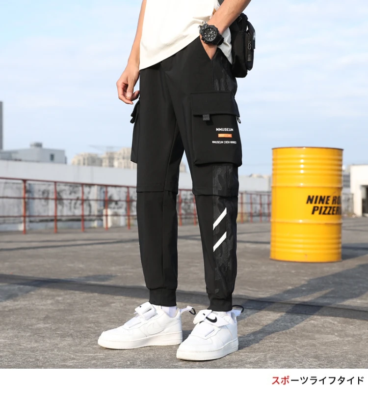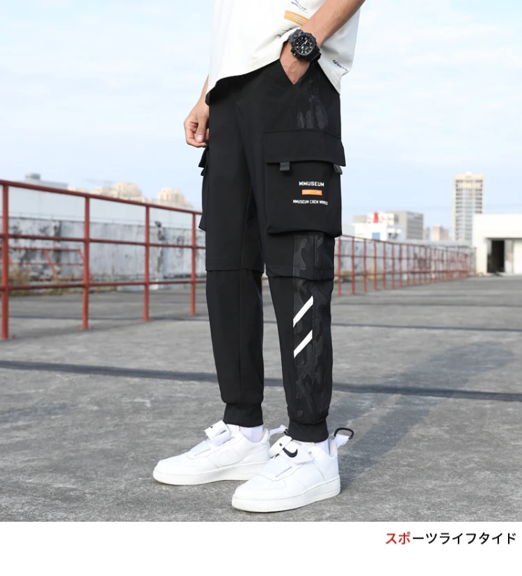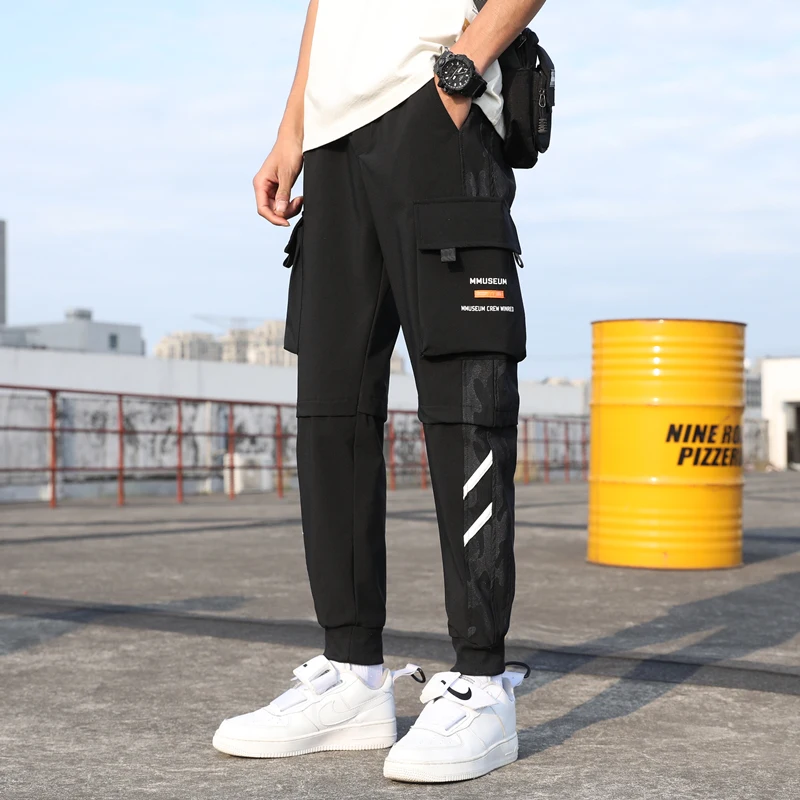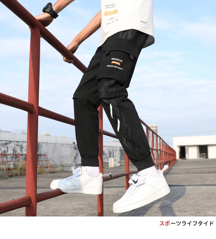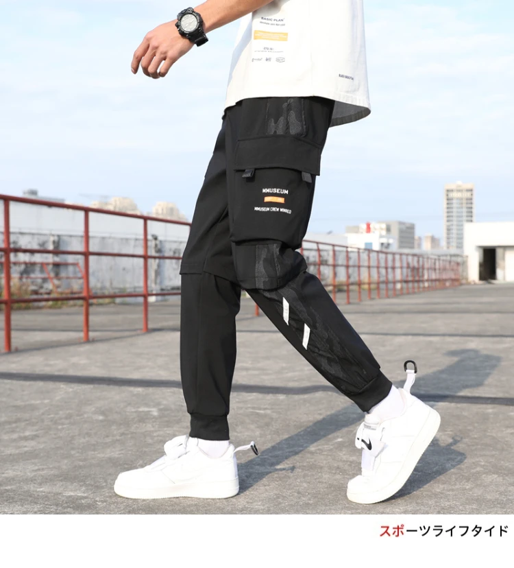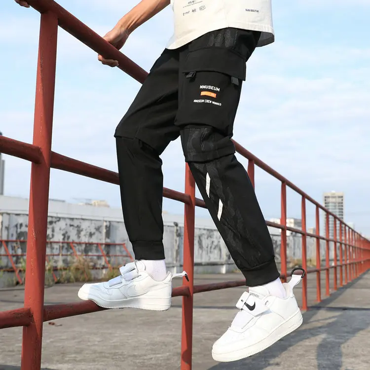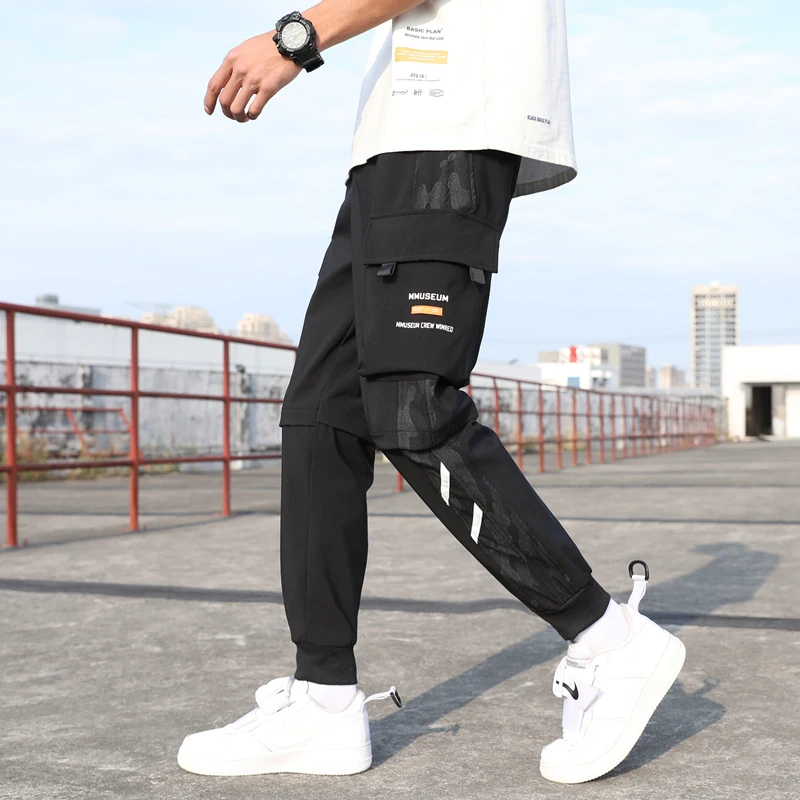 Брюки-карго мужские повседневные, спортивные штаны в стиле хип-хоп, модные джоггеры с боковыми карманами, черные, уличная одежда, 2021
