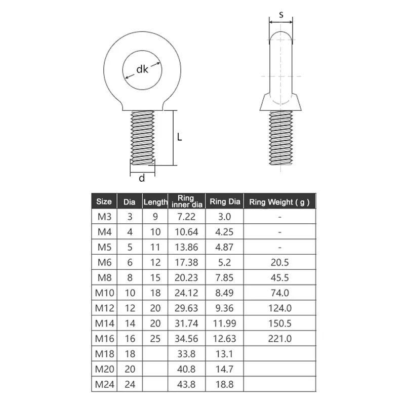 Болты с кольцевым крюком из нержавеющей стали A2, крепежные болты M3, M4, M5, M6, M10, M12M, M18, 1 шт.