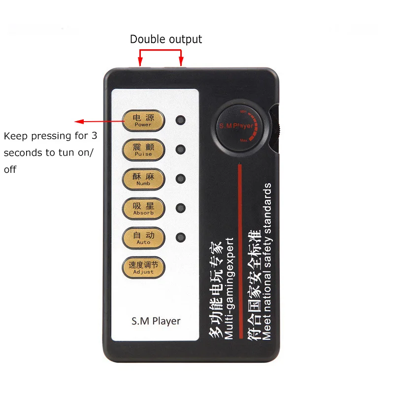 Установите батарейки 2 * AAA и убедитесь, что они работают.Удерживайте кнопку «power'» 2-5 секунд для включения, индикатор постоянно горит красным.Нажмите один из рабочих режимов, индикатор мигает зеленым или светится зеленым цветом.Нажмите кнопку регулировки скорости, чтобы ускорить или замедлить работу.Поверните верхнее правое колесо (положение плеера S.M), чтобы усилить или ослабить ток электроэнергии, поверните вниз, чтобы укрепить, Поверните вверх, чтобы ослабить.Нажмите кнопку «Питание» для выключения питания или удерживайте кнопку «Питание» в течение 2-5 секунд или дайте ему сидеть в течение 5-10 секунд.