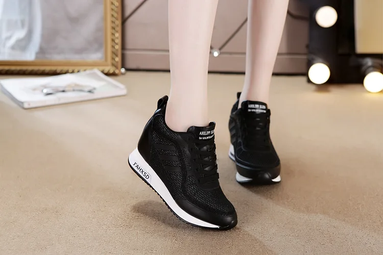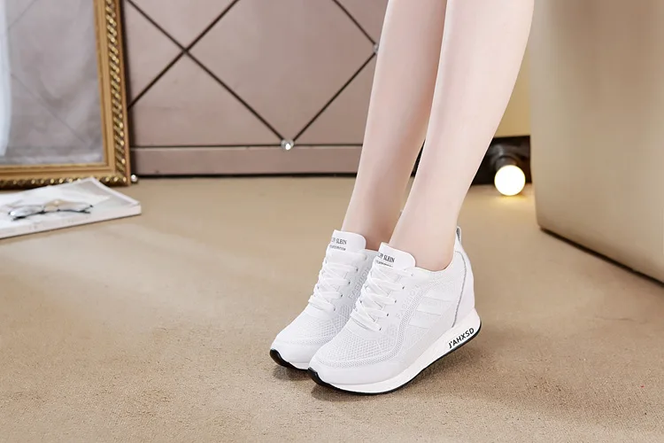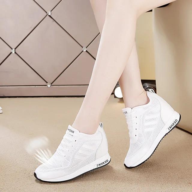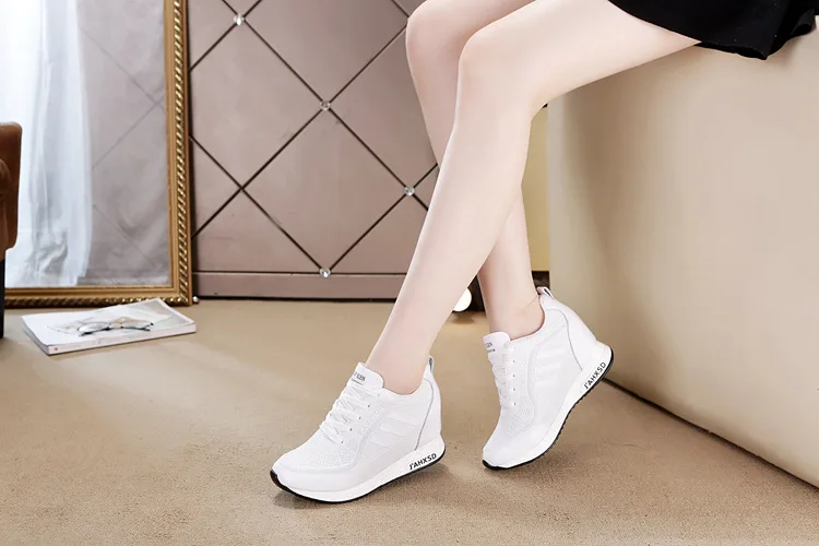 Женские теннисные туфли на танкетке, Белые Повседневные кроссовки на платформе, модная кожаная обувь для бега с вулканизированной подошвой, лето 2021