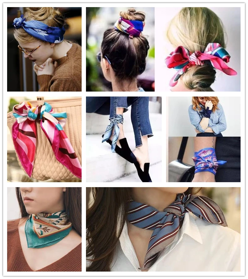 Длина: 53x53 см Цвет: как показано на рисунке Стиль: модный принт Использование: многофункциональный Этот маленький шарф-волшебное оружие для молодой и красивой юной леди. Благодаря чему шарфы, повязки на голову и ремни для сумок выглядят великолепно
