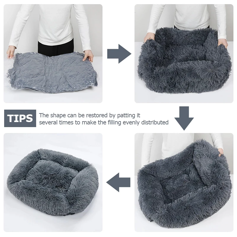 Квадратная кровать для собак, Длинные Плюшевые одноцветные кровати для домашних животных, кошачий коврик для маленьких средних и больших домашних животных, супер мягкие зимние теплые спальные коврики