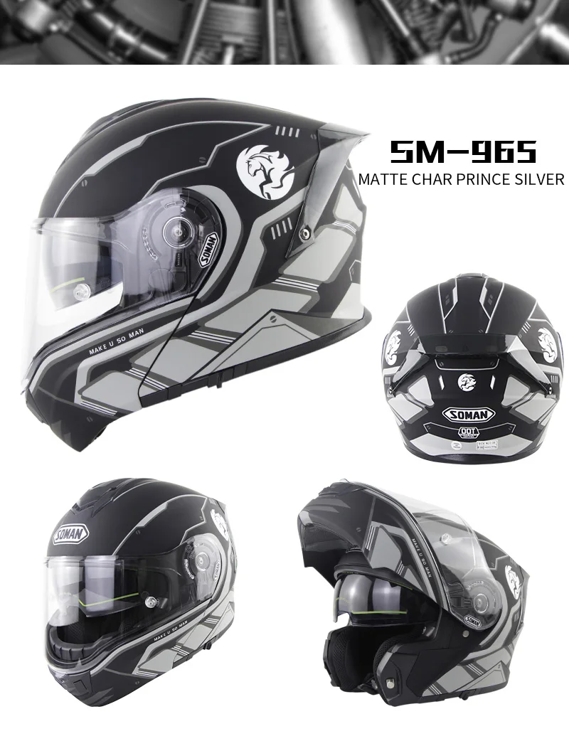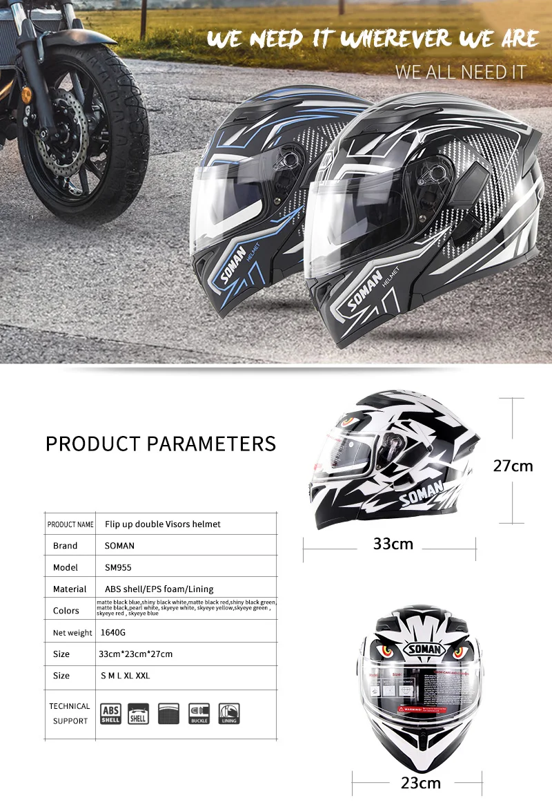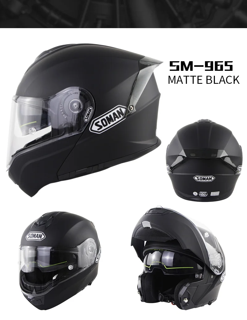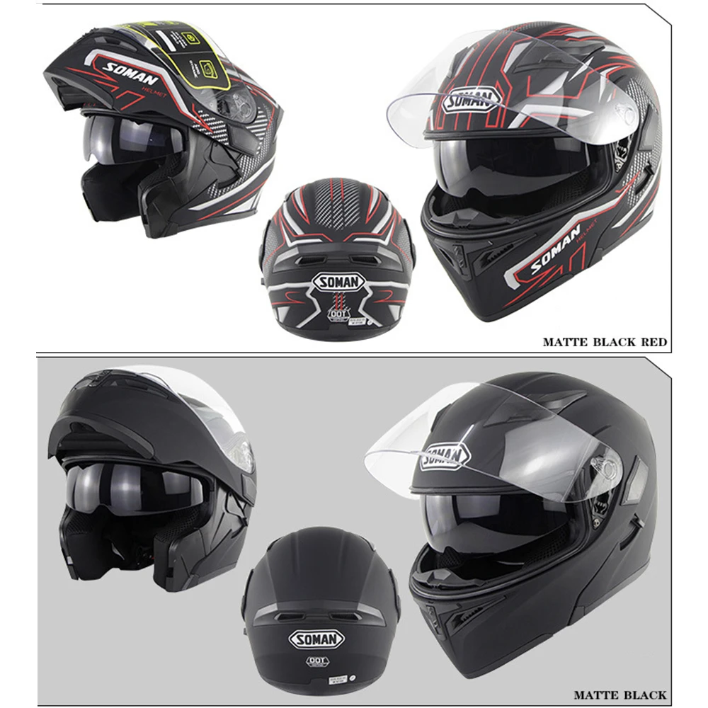 Мотоциклетный шлем SOMAN с откидной крышкой, шлем с двойными линзам...