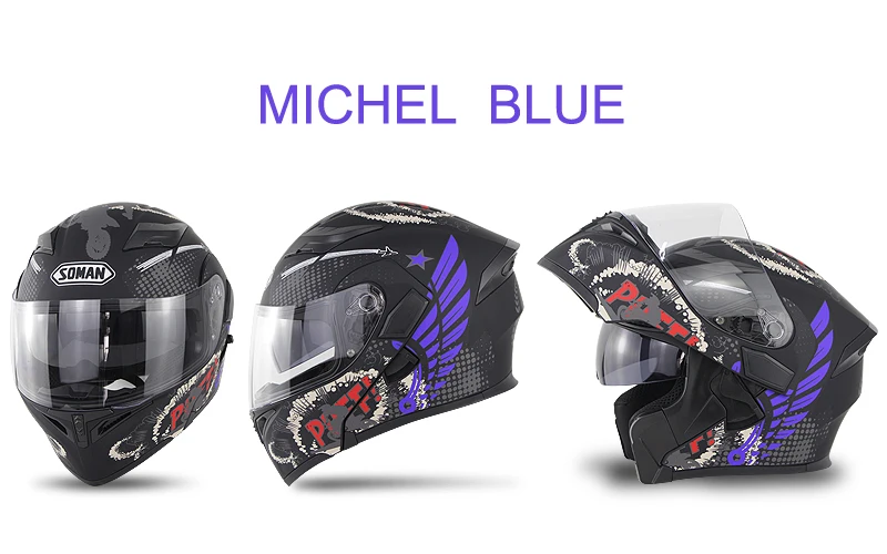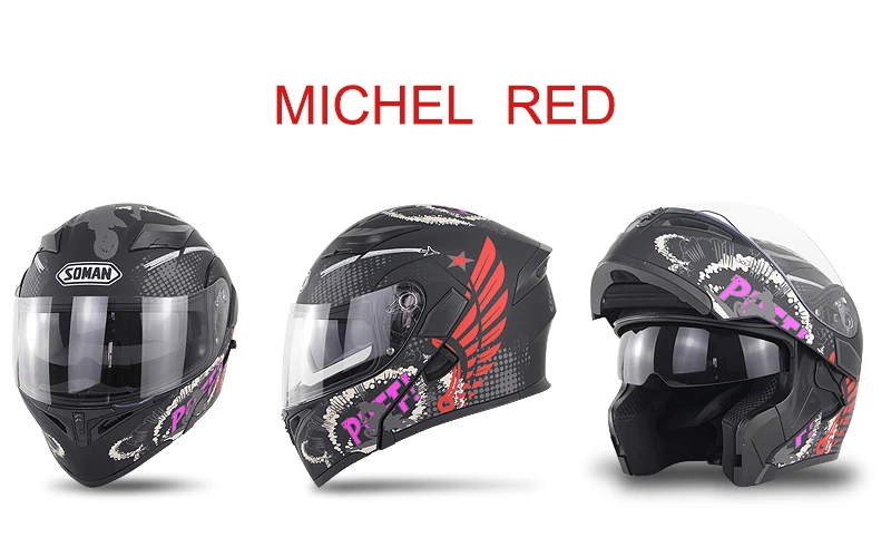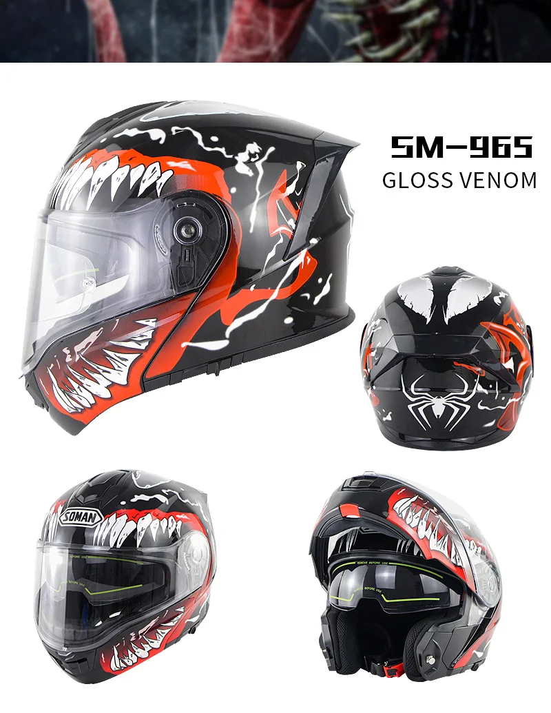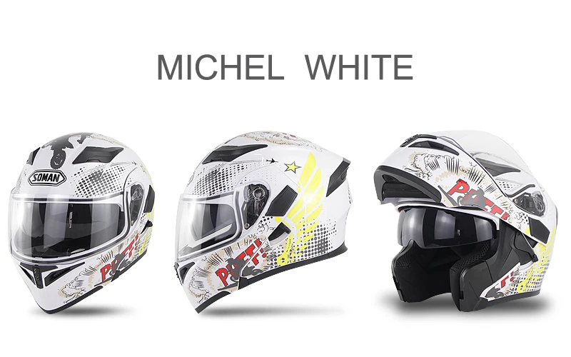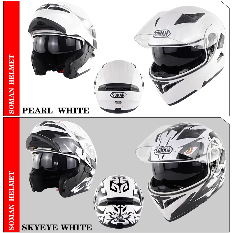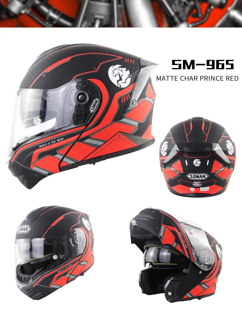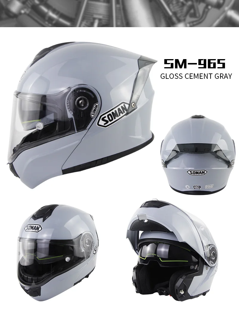 Мотоциклетный шлем SOMAN с откидной крышкой, шлем с двойными линзам...