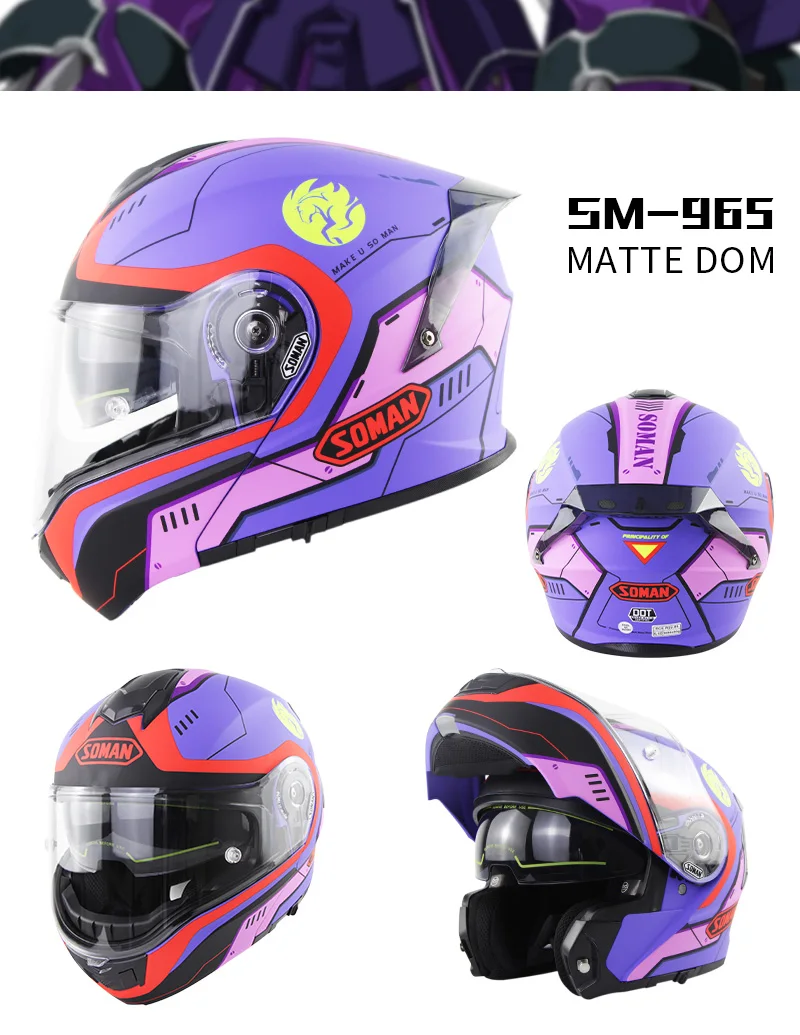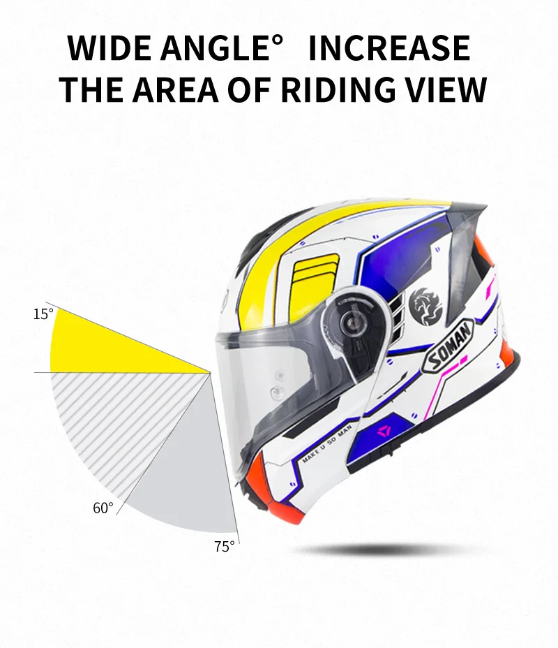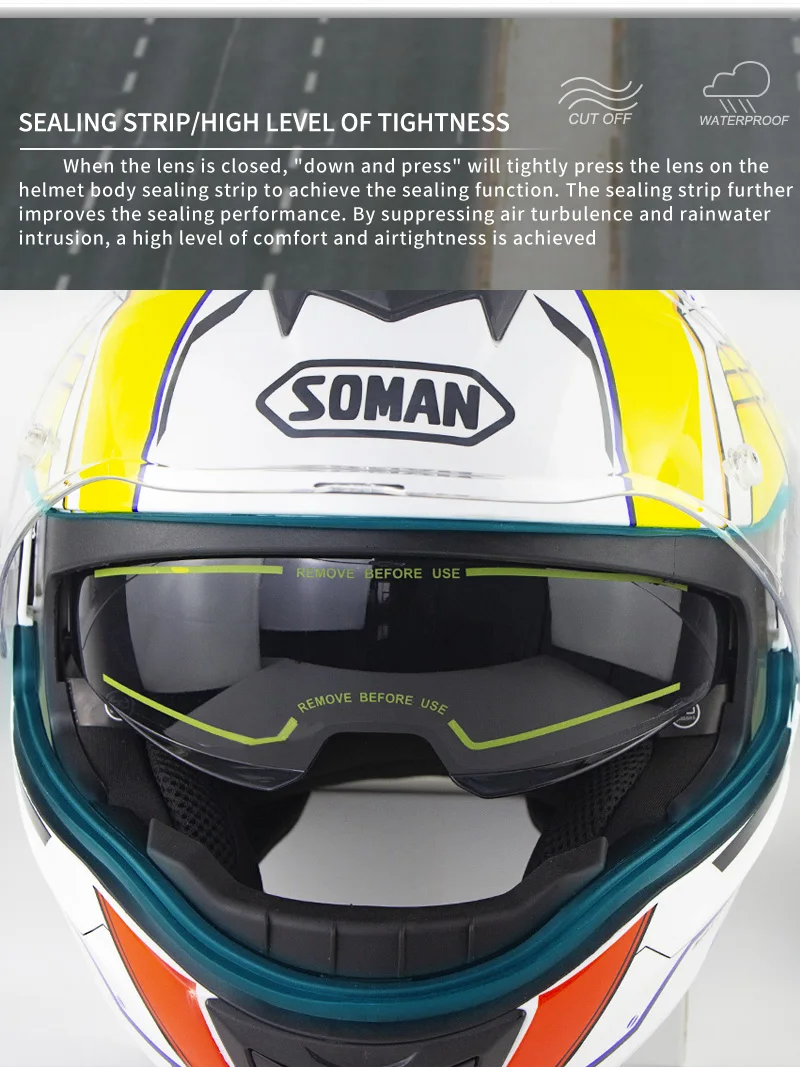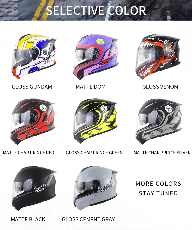 Мотоциклетный шлем SOMAN ECE, откидной козырек, двойной объектив, м...