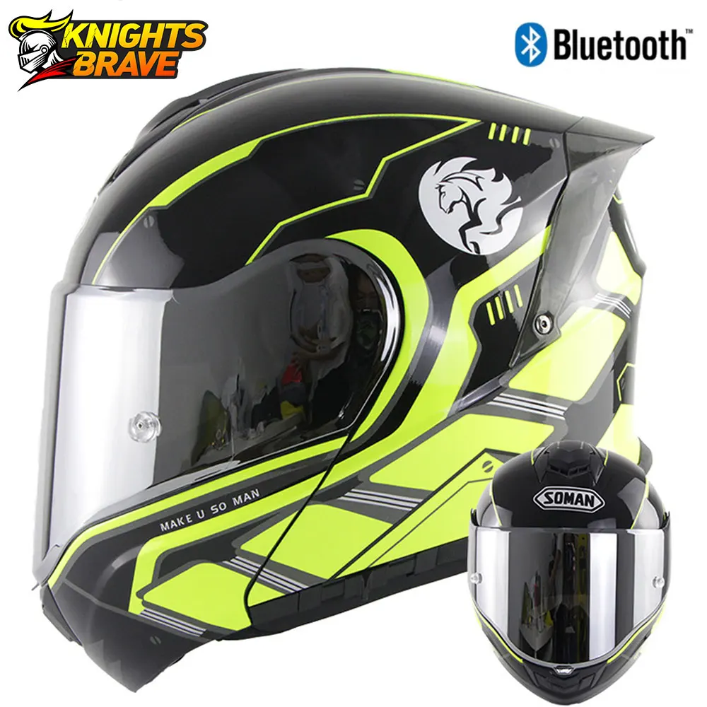 Мотоциклетный шлем SOMAN с Bluetooth, откидной козырек, двойная лин...