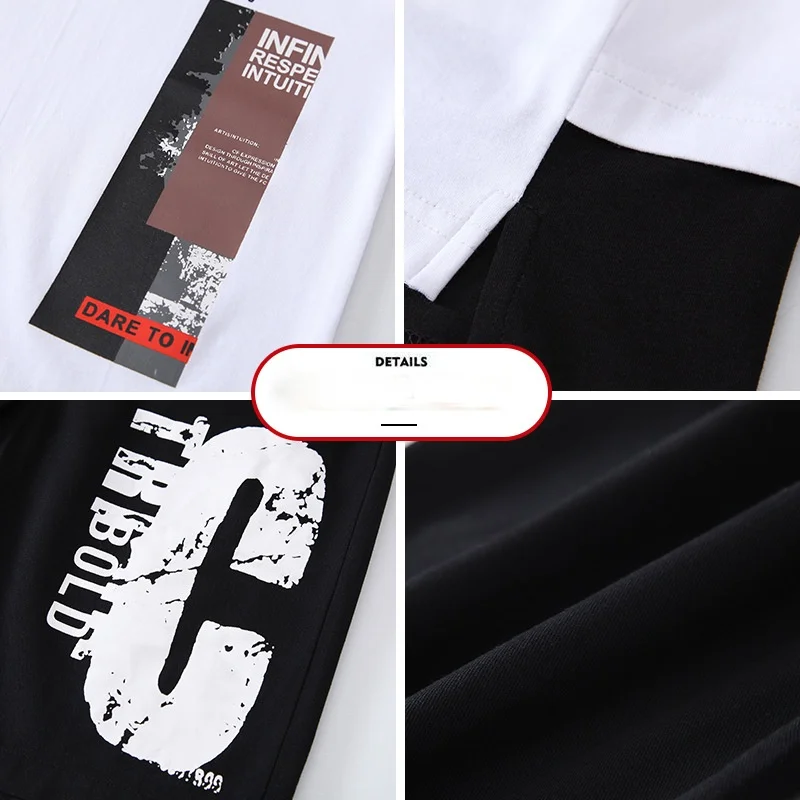Детские футболки для мальчиков, одежда с рисунком, с изображением букв, комплекты новых футболка с мультфильмами и укороченных брюк защитного цвета комплект одежды из 2 предметов в стиле хип-хоп в уличном стиле для подростков, спортивный костюм