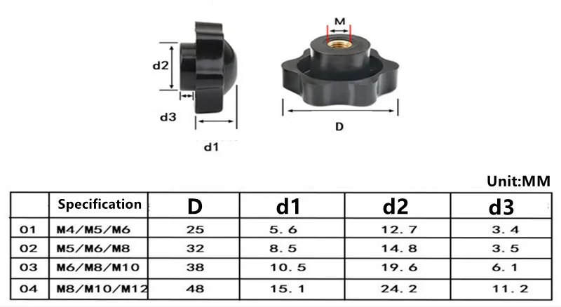 5 шт. M4 M5 M6 M8 M10 M12 сливовые ручные затягивающие гайки ручная резьба механические черные гайки для большого пальца искусственные перфорированные гайки