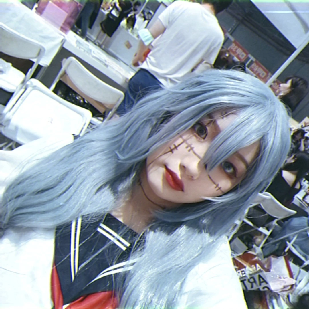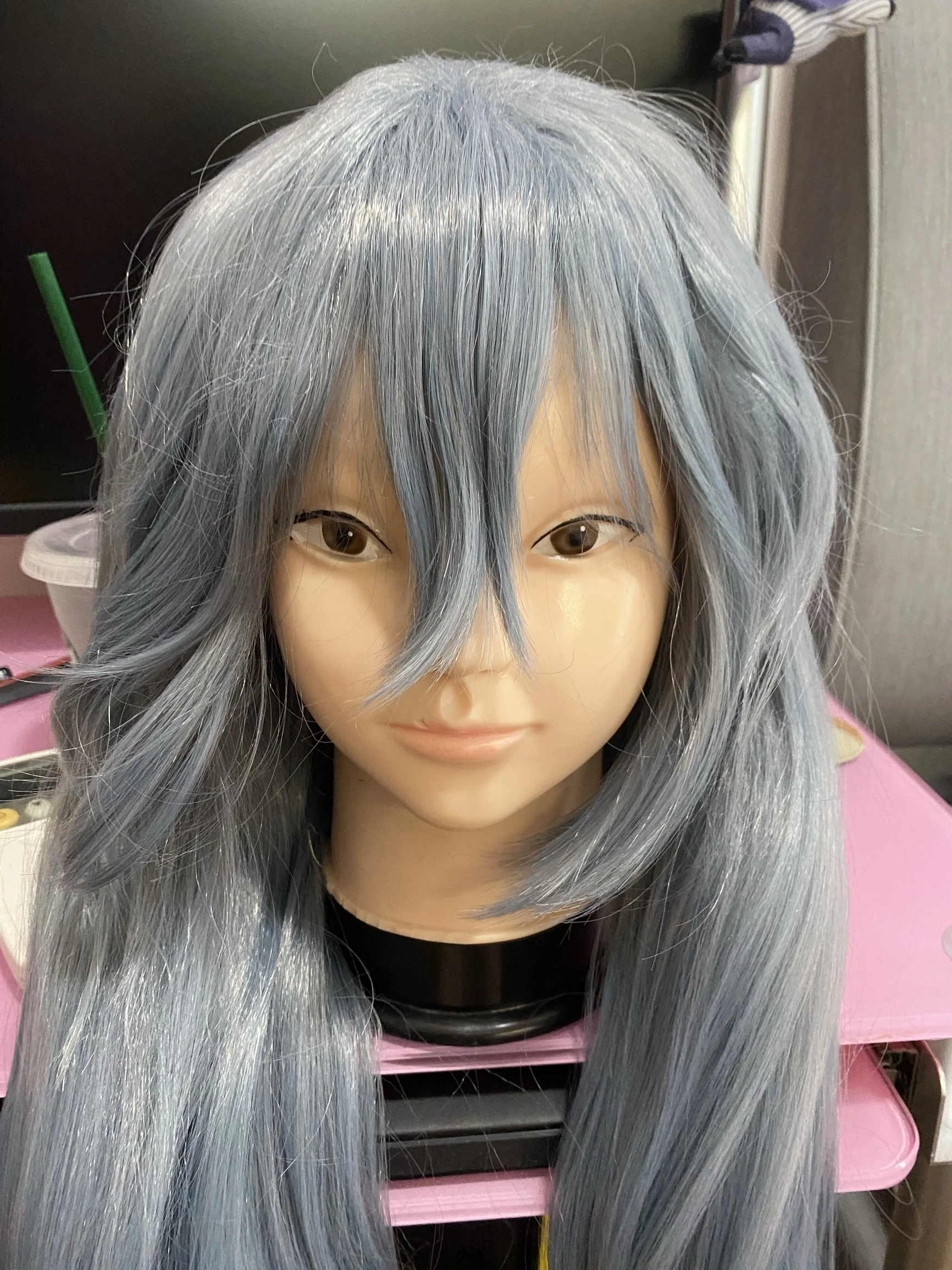 la peluca es igual a la foto, en fotos a veces se ve de un tono azul/ gris aunque en persona es un tipo de azul palido muy bonito, tipo rei de evangelion, tiene buena cantidad de cabello y volumen,sin embargo en la parte de arriba es poquito delgada, sin embargo es una excelente peluca