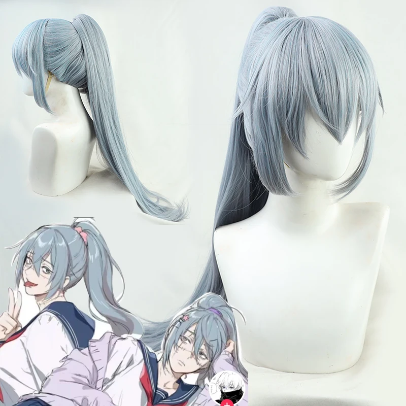 Парик для косплея джутсу Kaisen Mahito светильник-серого и синего цвета с зажимом для конского хвоста термостойкие волосы три оплетки и конский волос + шапочка для парика