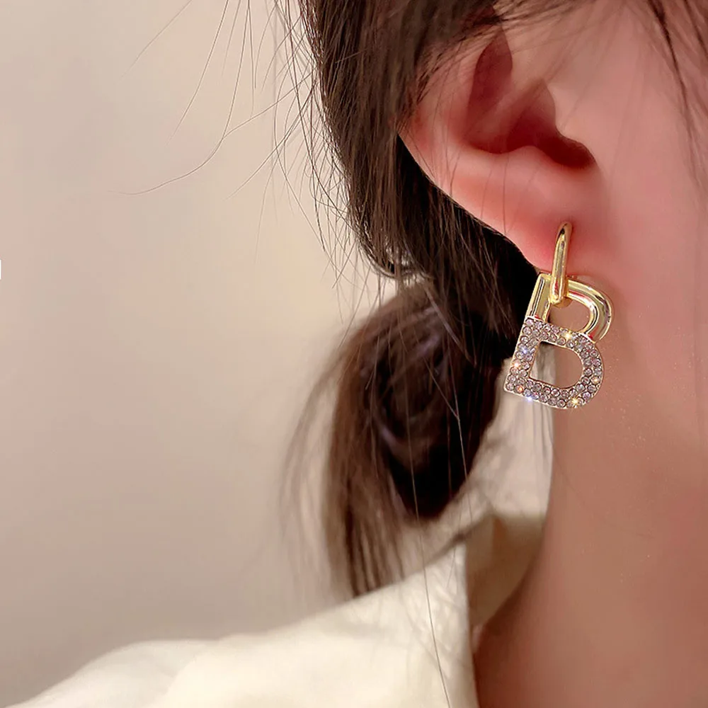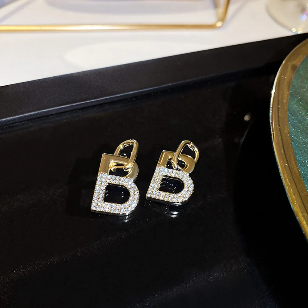 Серьги с алмазной буквой B Размеры: 3*1,5 см Материал: сплав, стразы Вес: 10,3 г