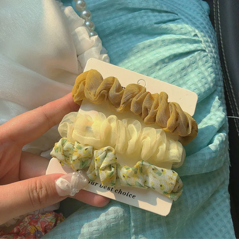3 шт.компл. с цветочным принтом Сетчатое резинка для волос Веревка ...