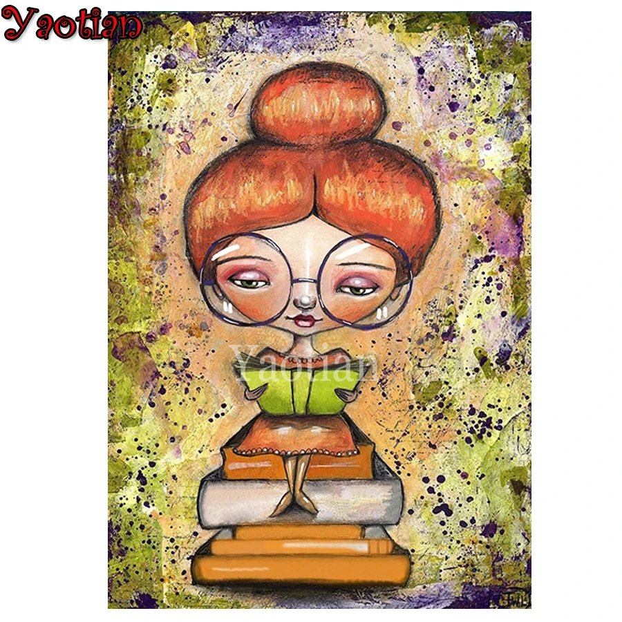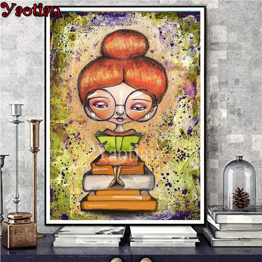 Полноразмернаякруглая Алмазная 5D картина для творчества, мультяшная девушка, книга для чтения, вышивка крестиком, вышивка 5D, домашний декор, подарок