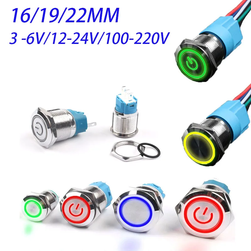 Кнопка питания металлическая водонепроницаемая, 161922 мм, 51224110 В, 220 В