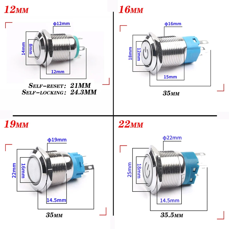 Страна: BY Color: Red light suit Size: 16mm Standard: Fixed self-locking Voltage: 12-24V Доставка: Saver Shipping 28.10.2021