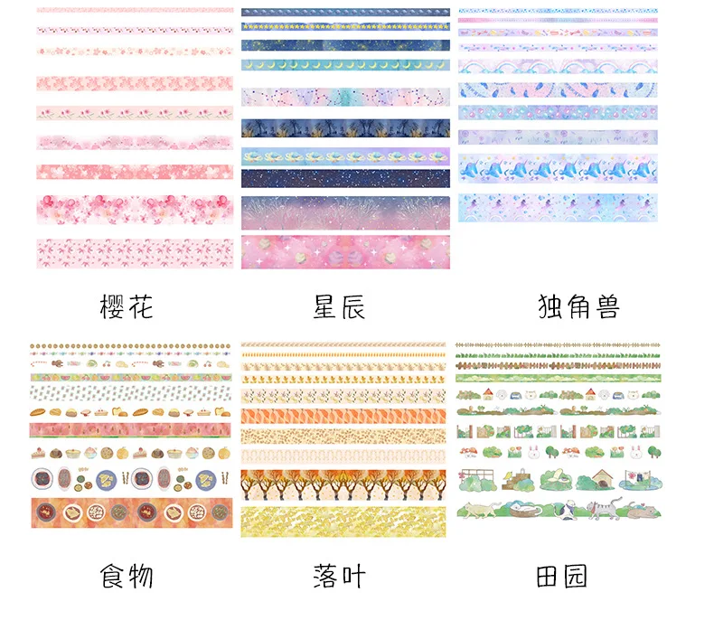 Декоративная бумажная лента Washi набор маскировочной клейкой ленты с изображением звездного неба, листьев, цветов, животных, 10 рулонов