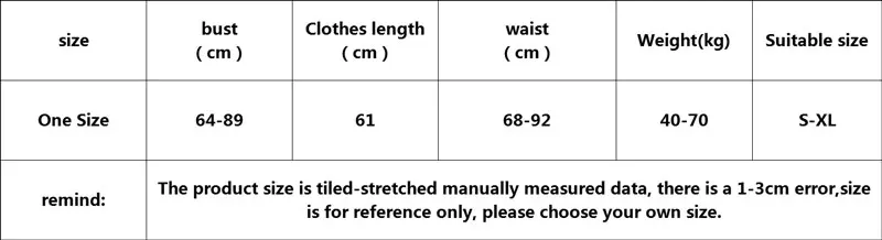 Описание:Состав основной ткани: спандексСодержание основного ингредиента ткани: 20 (%)Размер: один размер(Подходящий размер S-XL) Вес (кг):40-70Посылка включает в себя: костюм горничной * 1 Модель: высота 170 см; Вес 55 кг