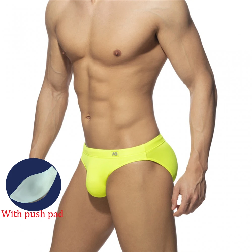 Новинка 2021, мужские плавательные брифы, сексуальный однотонный купальник, быстросохнущие шорты, мужские трусы с эффектом пуш-ап, одежда для плавания