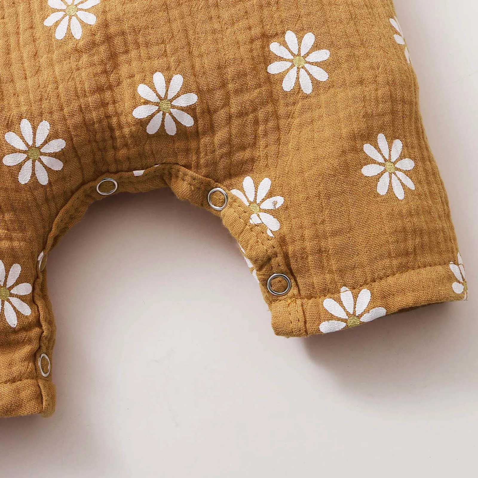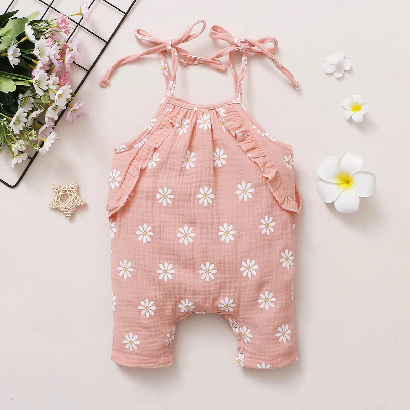 Комбинезон для новорожденных девочек, с цветочным принтом, с оборками, лето печатная подвеска