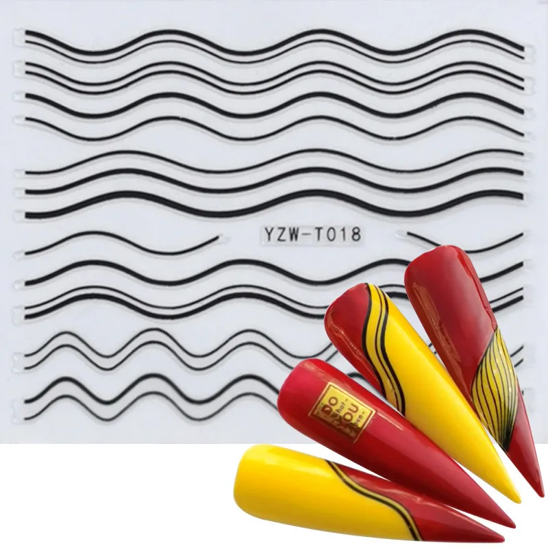 3D Изогнутые полосы линии слайдер ногтей Клей стикер обертывания ме...