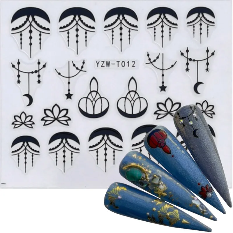 1 шт. стикер для ногтей черный и золотой цветокЛюбовькружевогорошек...