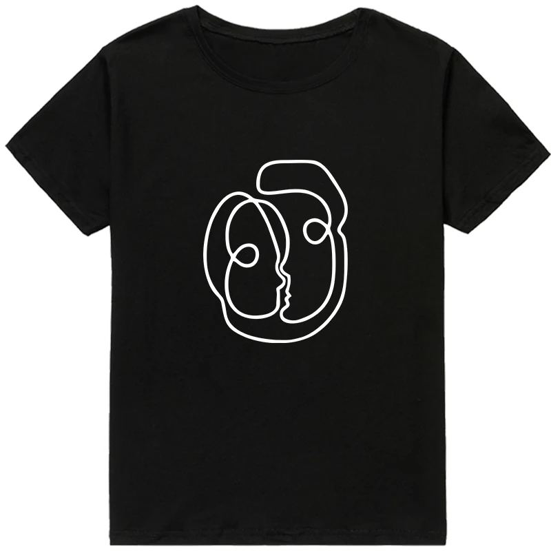 Мода поцелуй уход за кожей лица Абстрактная живопись эстетическое женская футболка с коротким рукавом рубашка с рукавами Искусство Графический Футболка Леди черный, белый цвет Топ ropa mujer
