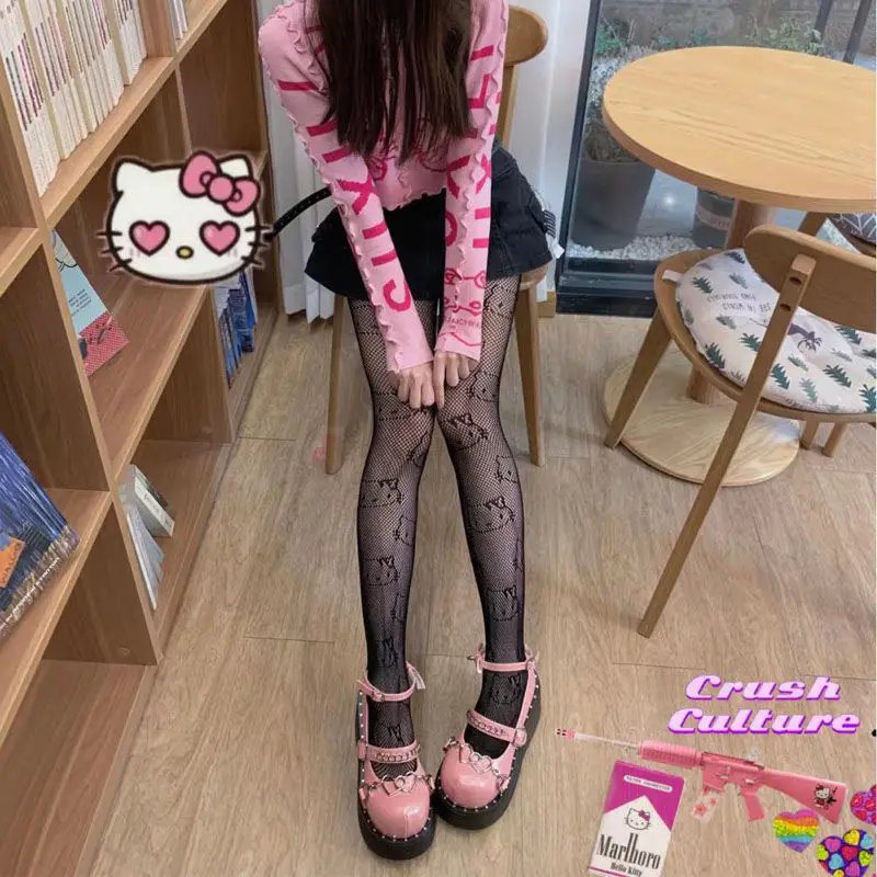 Sanrio, сексуальные черные шелковые колготки Hello Kitty для девуше...